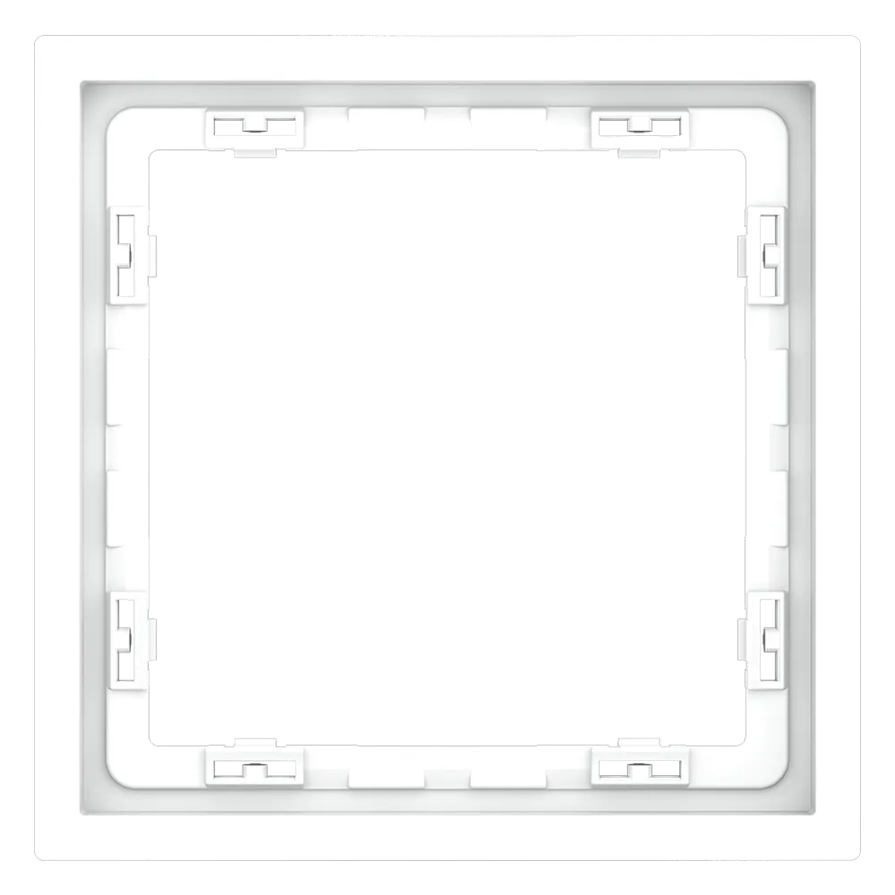 Обеспечивает быстрое и легкое соединение механизма с рамкой. Восемь фиксаторов по периметру нивелируют неровности стены и надежно удерживают конструкцию.