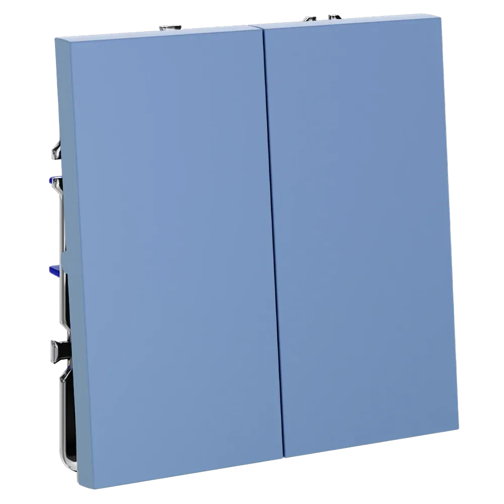 Двухклавишный проходной переключатель VOLTUM S70 в цвете «деним» — это продвинутое решение для независимого управления двумя группами освещения из двух и более точек. Идеально подходит для просторных гостиных, спален с отдельной зоной отдыха, офисов и многоуровневых помещений, где требуется гибкость и удобство управления светом — например, у входа и у изголовья кровати.